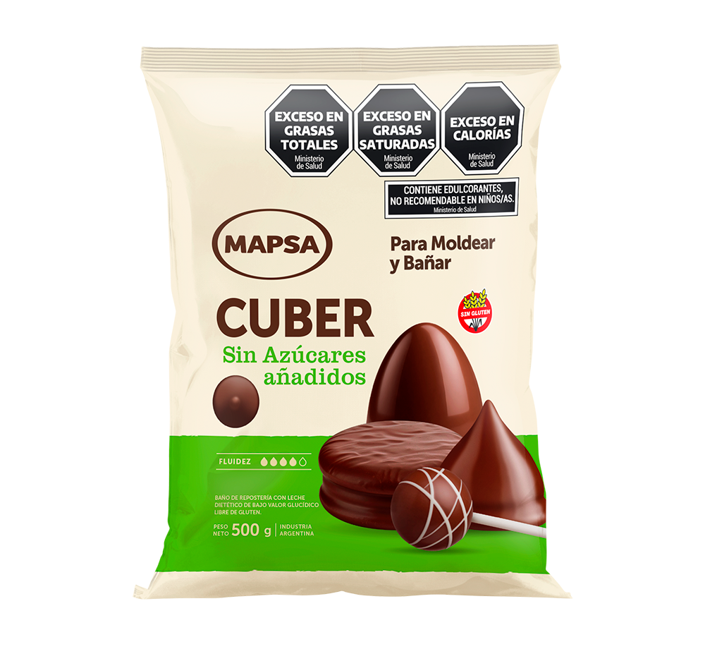 Ingredientes: Azúcar; grasa vegetal; sólidos de leche; leche descremada en polvo; cacao en polvo; emulsionantes: INS322, INS476; aromatizantes permitidos. Aromatizado con etilvainillina. CONTIENE LECHE Y DERIVADO DE SOJA. PUEDE CONTENER MANÍ, AVELLANA Y SULFITOS.
