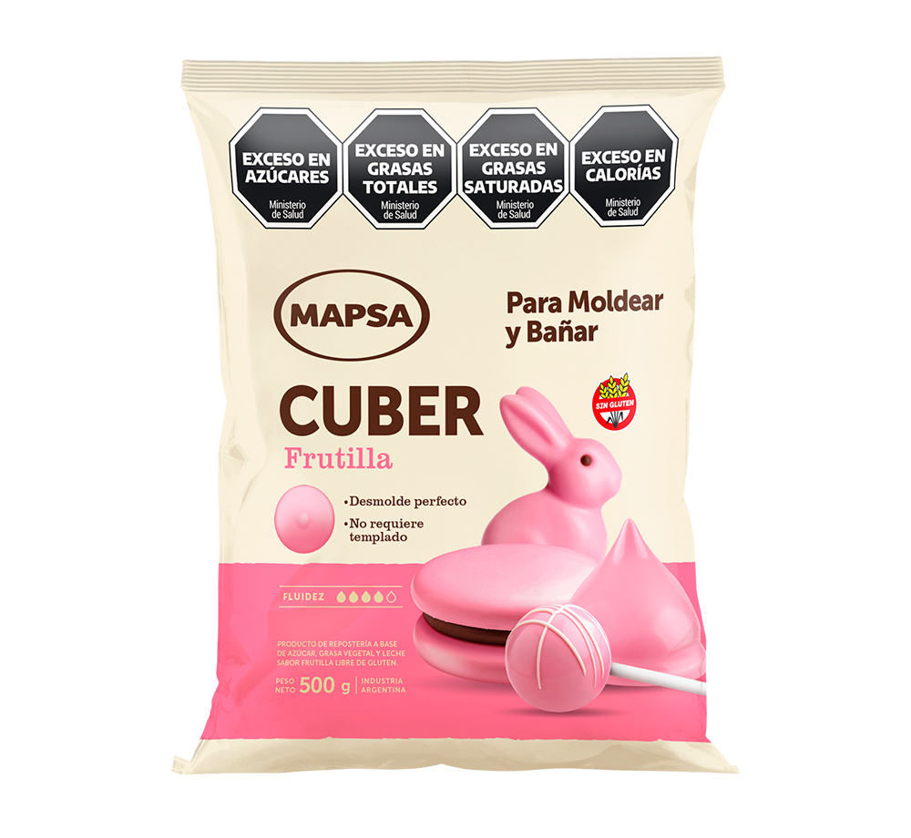 Ingredientes: Azúcar; grasa vegetal; leche descremada en polvo; emulsionantes: INS322, INS476; aromatizantes permitidos; colorantes: INS171, mezcla de colorantes (INS124, INS127, INS123). CONTIENE LECHE Y DERIVADO DE SOJA, PUEDE CONTENER MANÍ, AVELLANA Y SULFITOS.