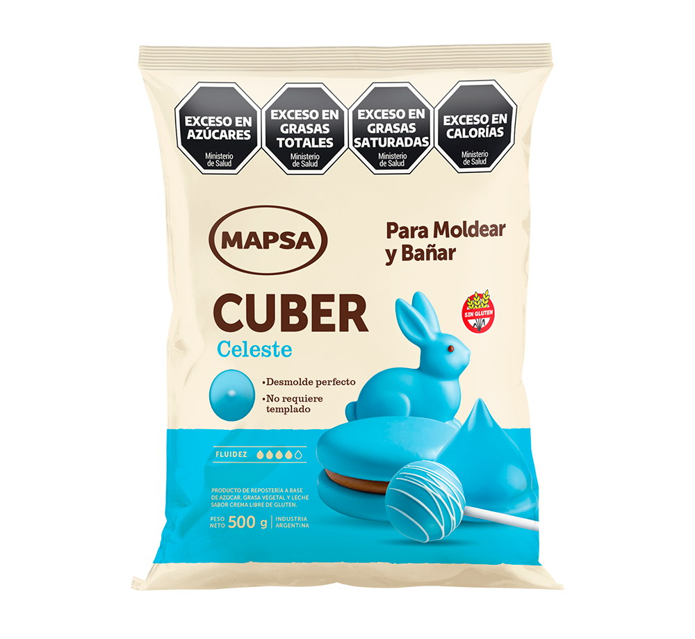 Ingredientes: Azúcar; grasa vegetal; leche descremada en polvo; sólidos de leche; emulsionantes: INS322, INS476; colorantes: INS133, INS171; aromatizantes permitidos. CONTIENE LECHE Y DERIVADO DE SOJA. PUEDE CONTENER MANÍ, AVELLANA Y SULFITOS.